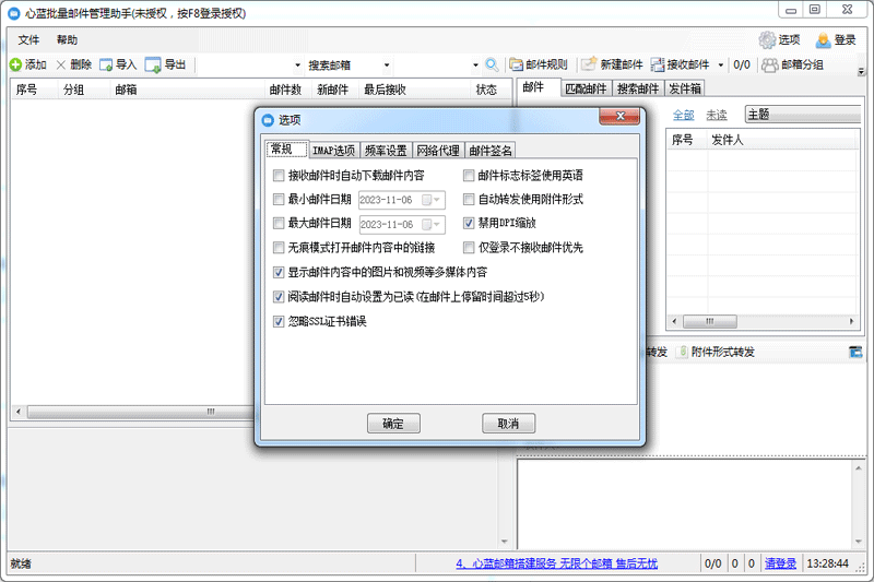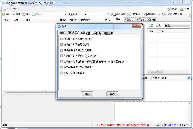 心蓝邮箱助手官方版属第三方邮件客户端程序,支持批量导入邮箱,批量登录查收邮件,支持设置代理IP,支持搜索匹配邮件及批量提取导出需要的关键字内容及附件等功能,是您批量管理多个邮箱邮件…