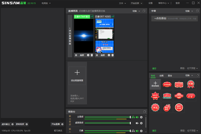 芯象导播是一款专业导播软件,通过微赞专业的音视频处理核心技术研发,现已支持多种输入源、炫酷字幕水印制作、多路调音台、多机位实时切换、画中画分屏、连麦互动等,通过多路机位将更多内容聚…