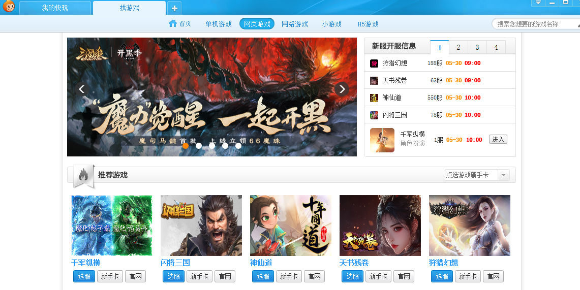 快玩游戏盒是一款游戏下载客户端,汇集了海量的游戏资源。在快玩游戏盒里选择你喜欢的游戏,点击鼠标即可开始游戏,喜欢玩游戏的朋友们赶快来下载使用吧。