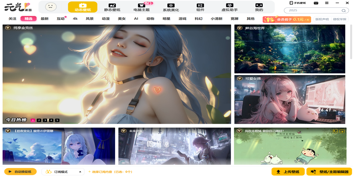 元气桌面是一款功能强劲的桌面壁纸美化软件,拥有海量超清动漫番剧、游戏、明星、风景、美女、萌宠动静态壁纸,还有壁纸自动切换、壁纸编辑器、鼠标轨迹、桌面美化部件、一键整理桌面等功能重新…
